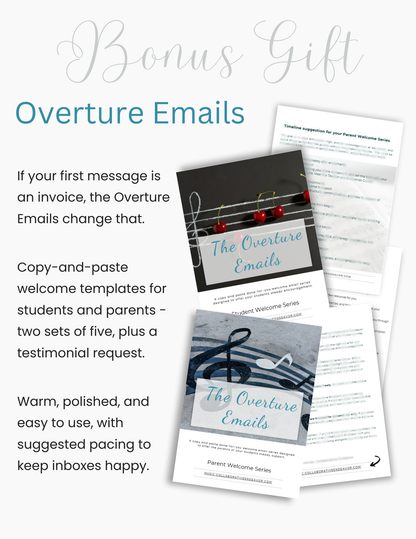 The Prelude Collection was designed for music teachers and music schools who care deeply about the experience they create. Instead of sending a simple invoice, you’ll deliver a welcome that builds trust, excitement, practice habits, and long-term loyalty from day one.